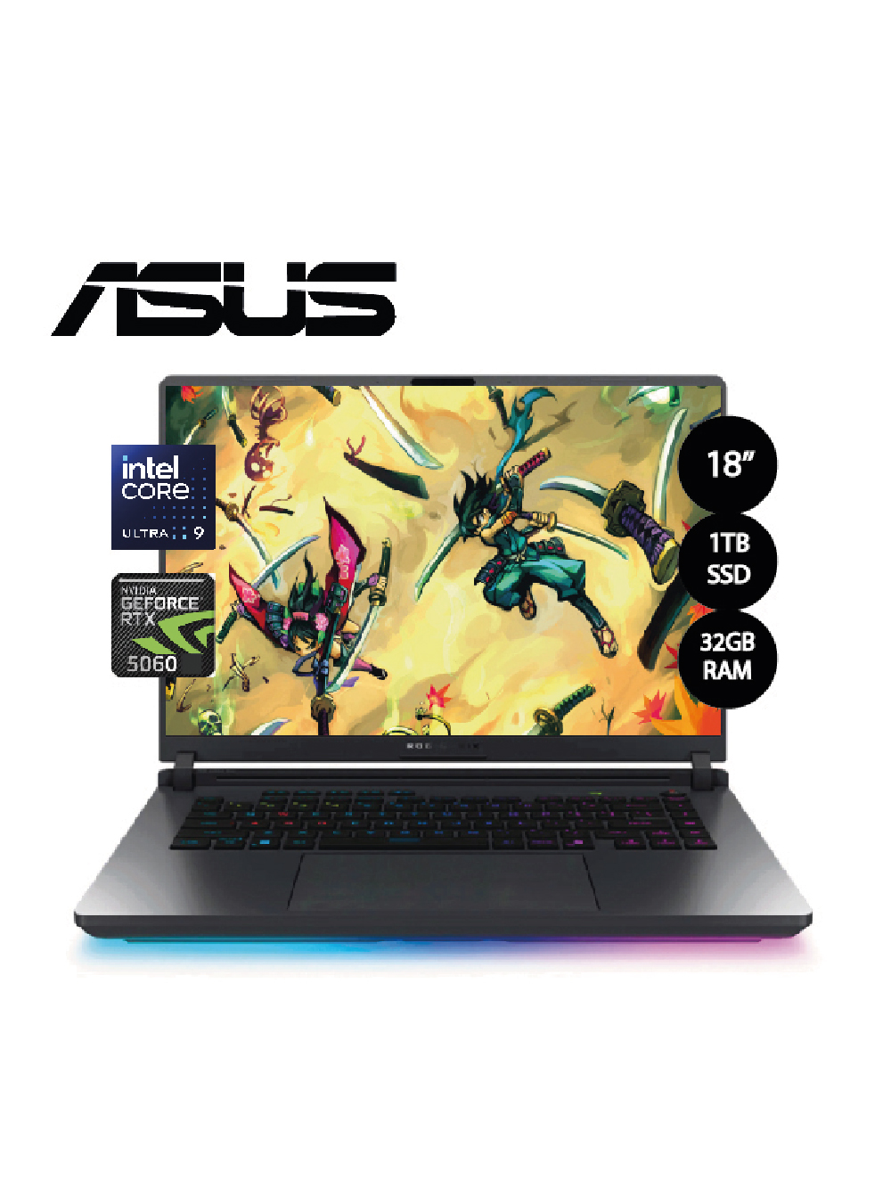 LAPTOP ASUS ROG STRIX G18 G815LM IS96, ULTRA 9-275HX, RAM 32GB, SSD 1TB, RTX 5060 8GB, PANT.18″FHD, WIN11